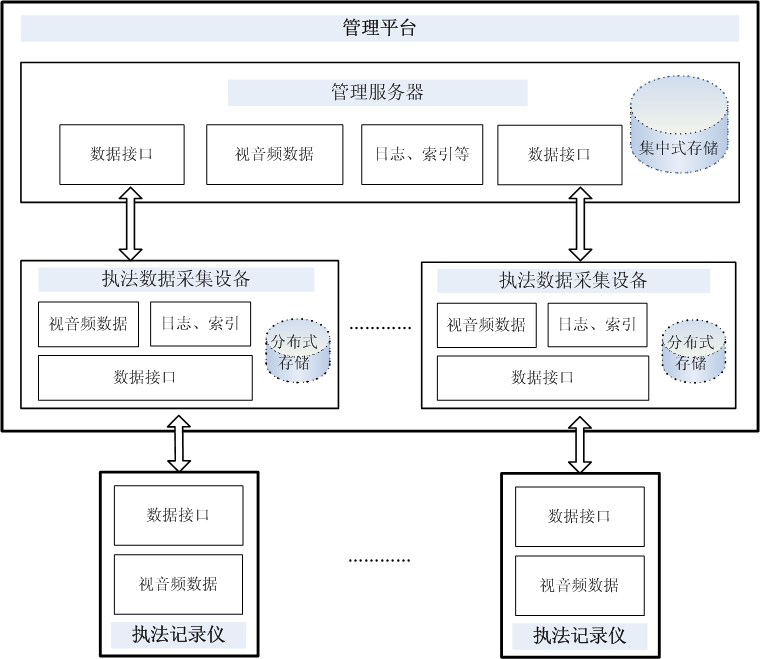 執(zhí)法記錄儀管理平臺(tái)是負(fù)責(zé)管理平臺(tái)下所有采集站中包括存儲(chǔ)期限、訪問(wèn)權(quán)限、安全審計(jì)、日常考核、抽查考核、流媒體歸檔、流媒體備份、流媒體刪除等整個(gè)生命周期的管理。